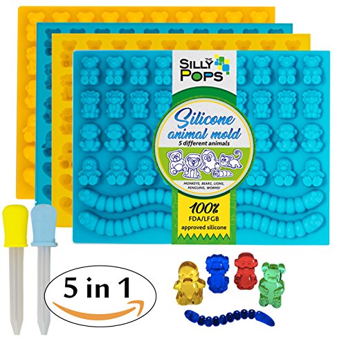 - GET THE BEST VALUE FOR MONEY - purchase our candy molds and you get a great bonus gift – a dropper to help you started making various treats of 5 different types of animals: gummy bears, lions, monkeys, penguins, worms