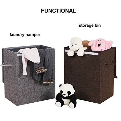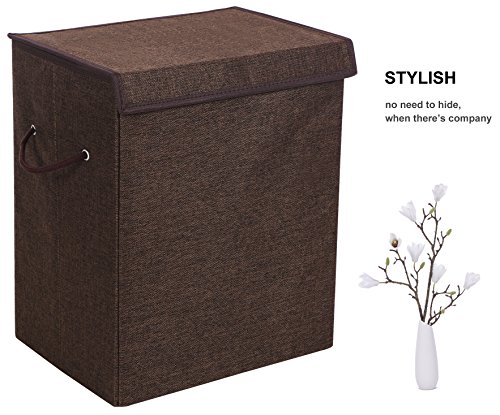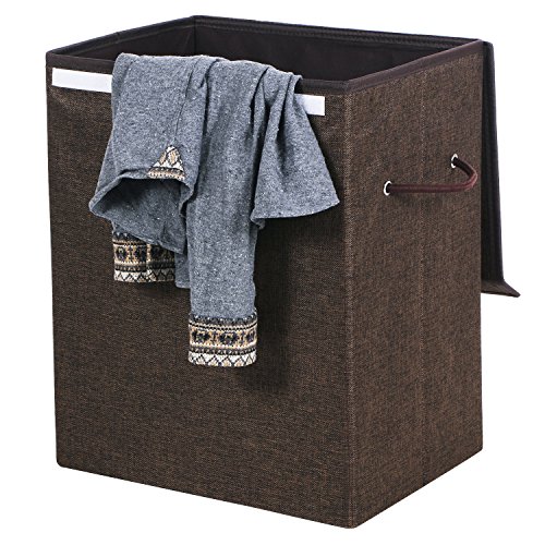 BEWISHOME Clothes Hamper with modern and functional design could be an attractive piece of furniture to any bedroom, laundry room, living room. Linen imitation fabric increases its durability. Attached lid will keep your laundry out of sight as well as hide the odors. Cotton rope handles are easy to transport to the washer or dryer. When not in use, foldable feature is very convenient for storage purposes or travel. It could be a storage helper too, putting in your kids' room to store stuff like toys, clothes etc. Specifications: - Main Color: brown - Material: imitation linen, cardboard, non-woven fabrics - Dimensions: 15.7"L x 11.8"W x 19.7"H (40 x 30 x 50cm) - Capacity: around 60L - Product Weight: 3.2lbs (1.5kg) - Package Weight: 4.3lbs (2kg) - Some minor assembly required Package Contents: - 1 x Laundry Hamper 0 |