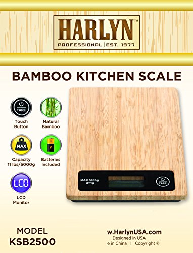 Harlyn Multifunction Digital Food & Kitchen Scale - Natural Bamboo Design - 11 LB Capacity - Tare Function - Backlit LCD - Auto Shutoff (cooking, baking,...