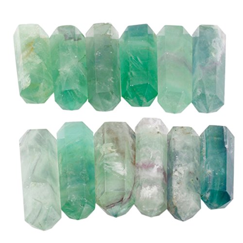 rockcloud Green Flourite Healing Crystal Point Faceted Prism Wand Carved Reiki Stone Figurine