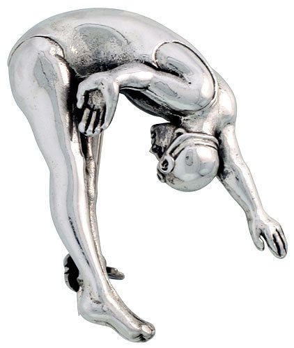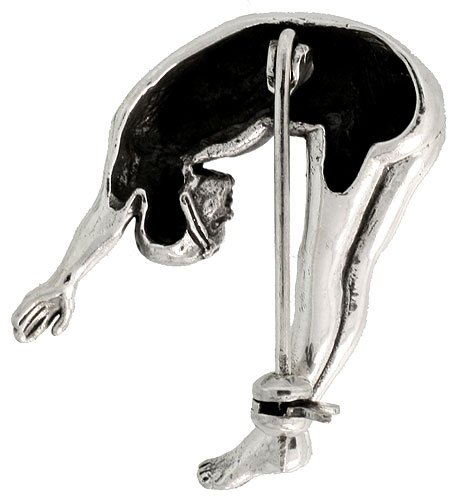 -. Title : Sterling Silver Acrobatic Diver Brooch Pin, 1 1/4" (32mm) tall