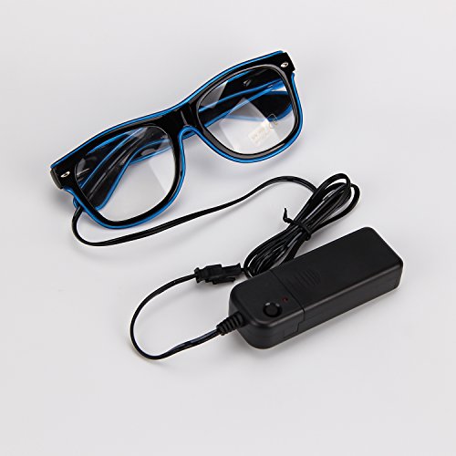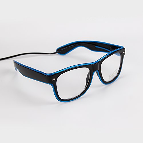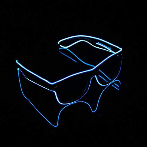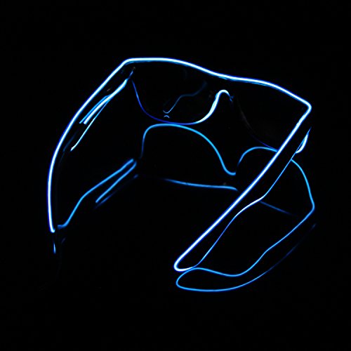 iChase EL Glasses ,EL Wire Fashion Neon Electroluminescent Flashing LED Glasses with Battery Case Controller for DJ Music Party for Rave Costume Party, Halloween & Christmas Gifts (Blue)