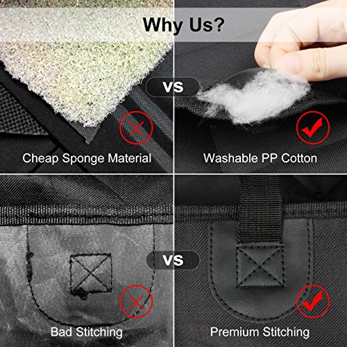 DURABLE MATERIAL - Heavy duty material 600D oxford fabric + A grade PP cotton + Waterproof PVC Middle + Slip-proof rubber back with seat anchor to keep the pet seat cover in place even on leather seats and help your dogs stay in place cozily.
