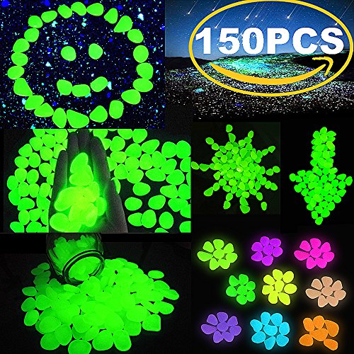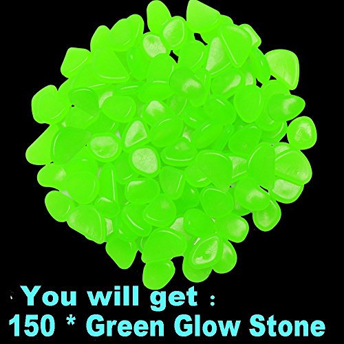 Outee 150 PCS Glow Pebbles Stones Glow in the Dark Stones Garden Decor Glow Gravel Stones for Garden Walkway, Man-made, Green