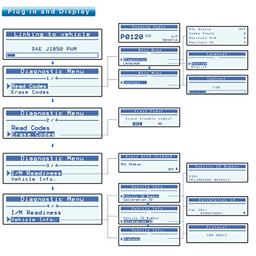 - Super easy to use! Once plugged into your vehicle's 16pin OBDII DLC, the unit will power up and prompt you to start your ignition. No need any Batteries or Charger, gets the power directly from the OBDII Data Link Connector in your vehicle, and you have the menu to read and erase error codes.
