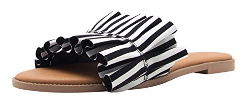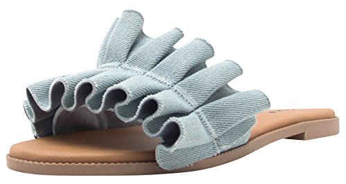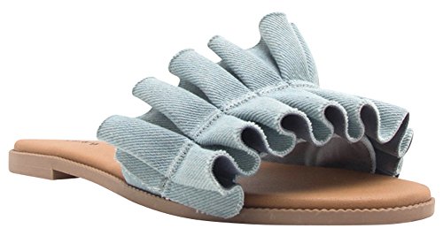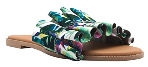 Cambridge Select Women's Open Toe Ruffle Backless Slip-On Slide Sandal