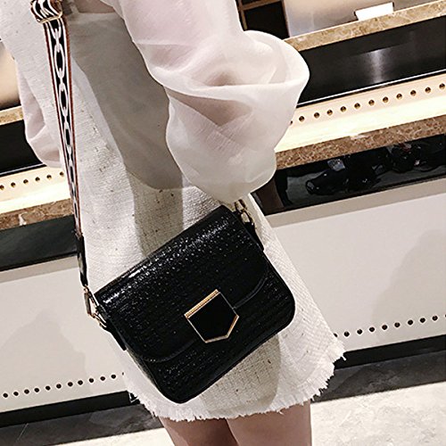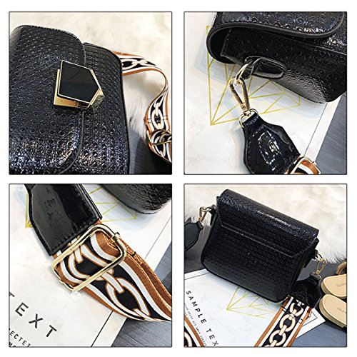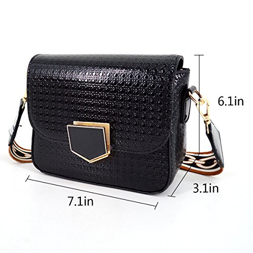 Queena Women PU Leather Embossing Crossbody Bag Square Shoulder Bag Handbag with Removable Wide Strap