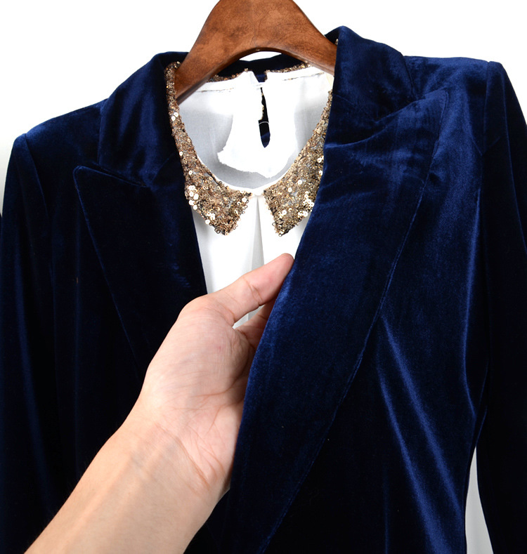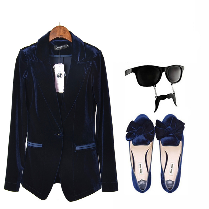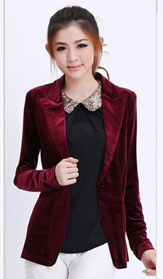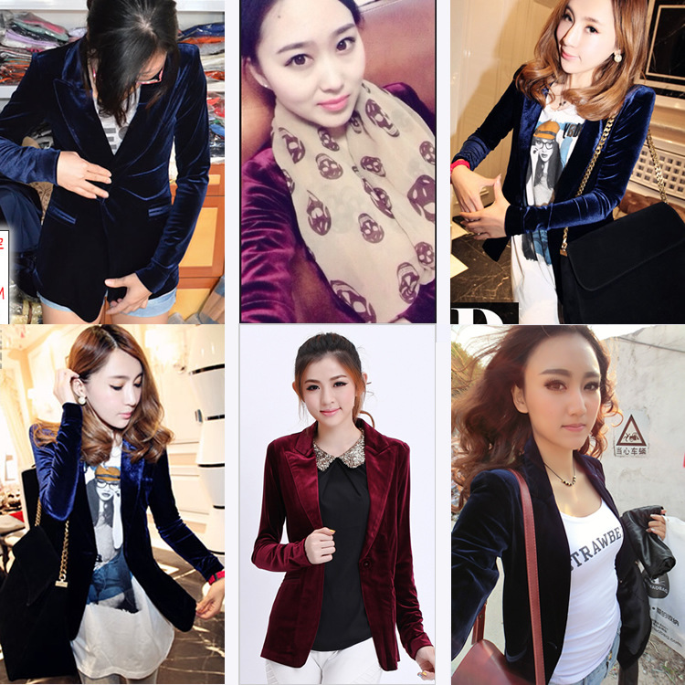 [xlmodel]-[photo]-[0000]New Fashion Women\ s Casual Suit Coat Jacket Coat Jacket Single Button Jacket Woman Blue And Wine Red Velvet Suit Slim Femal