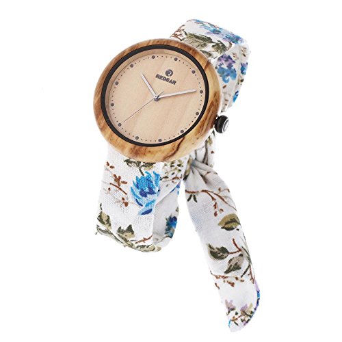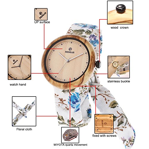 -. Title : Ideashop Women's Wooden Watch With Flower Cloth Strap Japanese Quartz Movement Casual Wrist Watch Women Lady Girl Gift