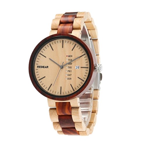 -. Title : Redear Unisex Classic Natural Eco Wood Watch with Date Display Casual Wooden Wrist Watch Perfect Gift