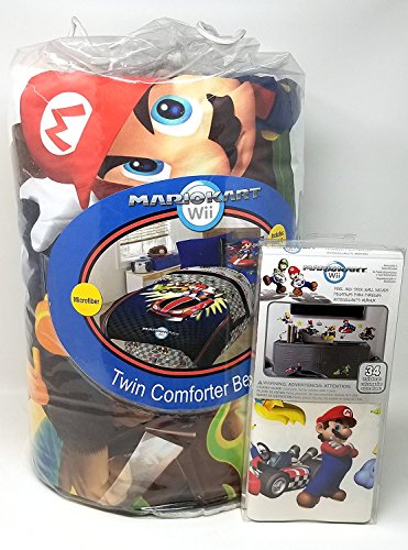(Super Mario)/Bedding Bath/Bedding/DIRECT FROM USA/Nintendo SUPER MARIO BROTHERS MARIO KART Twin Comforter Set 34pc WALL DECALS