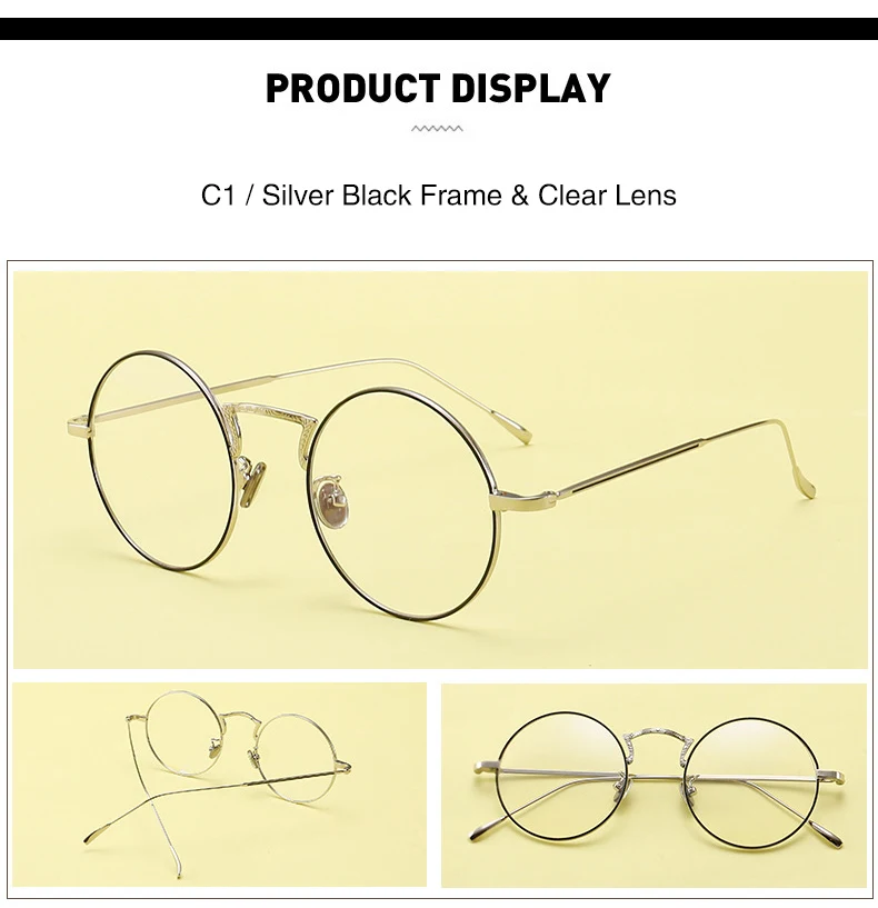 Style:Small Circle Lens,Full Alloy Glasses,Trasparent Goggles,Retro,Stylish