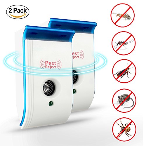 Ultrasonic Pest Repeller, Electronic Plug-in Pest Repellent to Insect, Mice, Roaches, Bugs, Fleas , Mosquitoes , Spiders, Flies, Indoor, Non-toxic Environment-friendly, Safe to Humans & Pets, 2 PACK