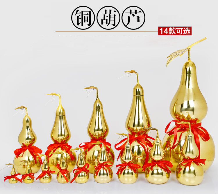 Hulu for Husband And Wife/Away from illness 开光3寸有叶铜葫芦/葫芦摆件/增益夫妻缘/葫芦化病