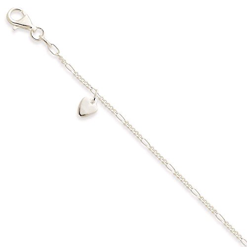 -. Title : 925 Sterling Silver Polished Dangling Hearts on Figaro Bracelet Anklet 9 inches