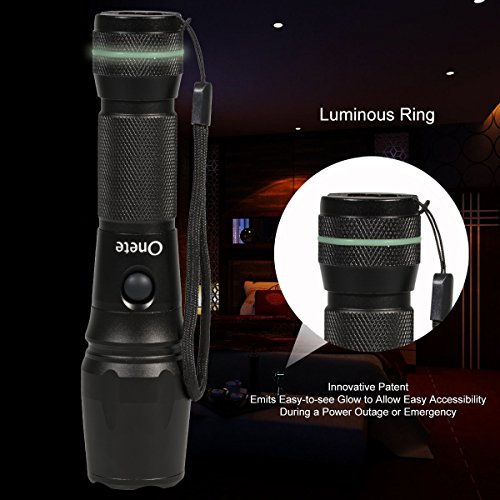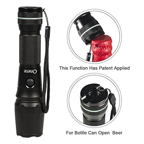 Led Flashlight Onete T6-D Ultra Bright Zoomable Adjustable Focus Water Resistant Portable Flashlights with Bottle Opener and Luminous Ring (1PACK)