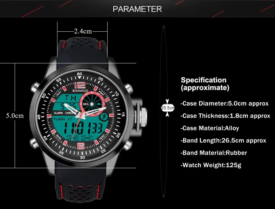 Feature:Water Resistant,LED display,Luminous,Multiple Time Zone,Auto Date,Complete Calendar,Alarm,Chronograph