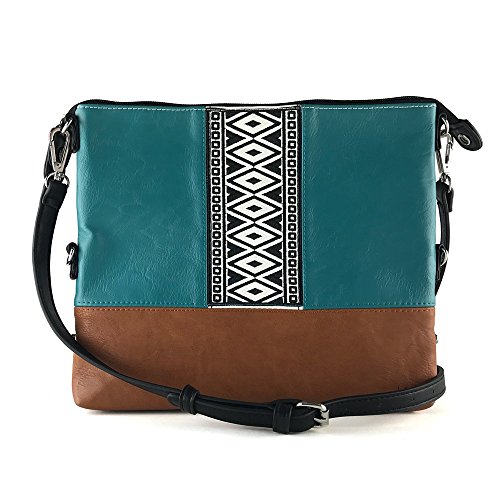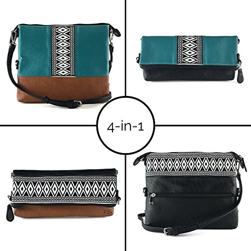 -. Title : K&Bo Women's Cross Body Bag and Clutch with Boho Style Embroidery, Teal /Black/Brown
