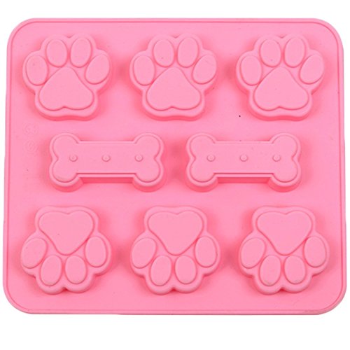 JLHua 2 Pack Food Grade Large Mats Trays, Puppy Pets Dog Paws & Bones Silicone Baking Molds, Bake Dog Treats For Pets, Kids, Dog-lovers, Kitchen Tips