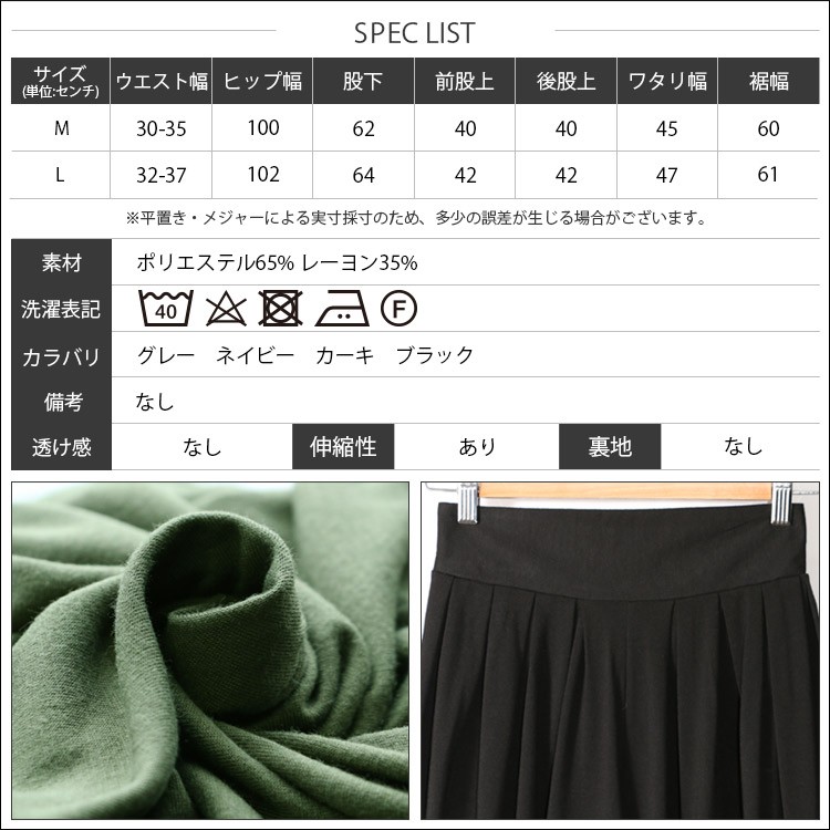 L:ウエスト幅 32-37cm ヒップ幅 102cm 股下 64cm 前股上 42cm 後股上 42cm わたり幅 47cm 裾幅 61cm