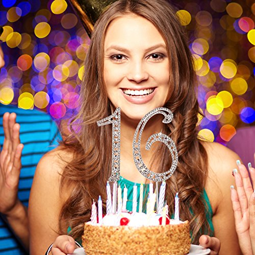 eBoot Sweet 16 Cake Topper 16th Birthday Party Supplies with Sparkling Rhinestone Crystals, Silver