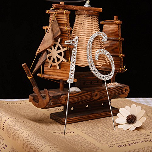 - Sweet 16 topper size: total length is 18.8 cm/ 7.4 inches, crystal number 1 size is 9.4 x 2.9 cm, number 6 size is 9.5 x 5.5 cm, the metal picks length is 9.4 cm/ 3.7 inches