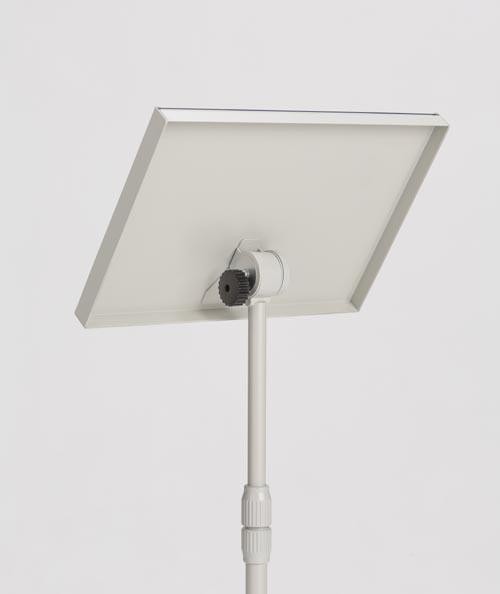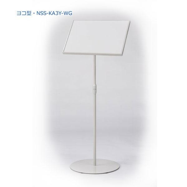 | 片面傾斜型タイプのサインスタンドです。板面はA3サイズ。高さ、板面の角度が調節可能。色は明るいホワイトグレーです。 |