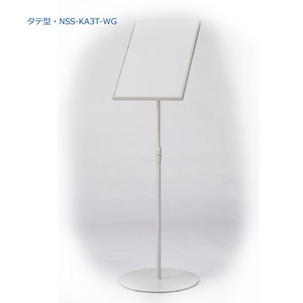 片面傾斜型タイプのサインスタンドです。板面はA3サイズ。高さ、板面の角度が調節可能。色は明るいホワイトグレーです。 |