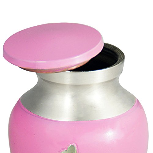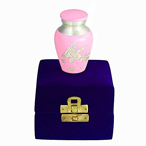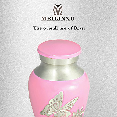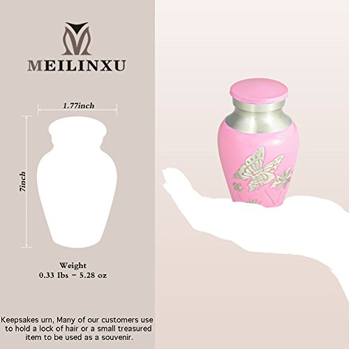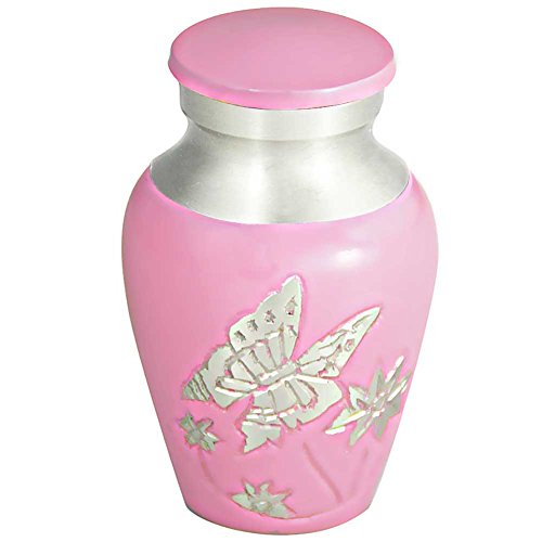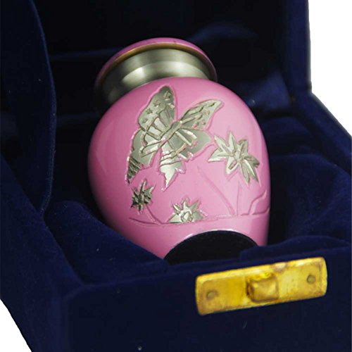 Meilinxu Memorials Keepsake Brass Cremation Urn Pink Butterfly in Pewter Finish * Miniature funeral urn is handcrafted of 100% brass and finished in Pewter with hand engraved etching. * Time-honored design offers an elegant resting place for your loved one. * Attractive keepsake urn will fit well with any decor, particularly at the office or next to a photograph. * Keepsakes are ideal for sharing memories among family members and friends. Note: keepsakes only hold a token amount of remains and will not hold an entire body. *The pink Butterfly Urn evokes the memory of your loved one in a traditional and timeless design.