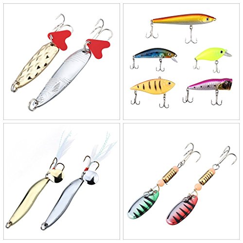 -. Title : Enkeeo Fishing Lure Set 106pcs Fishing Lures Baits Tackle with Soft Hard Metal Lure, Crankbaits, Hooks, Jigs, Plastic Worms, Grub, Minnow and More for Freshwater Saltwater Bass Trout Salmon Pike