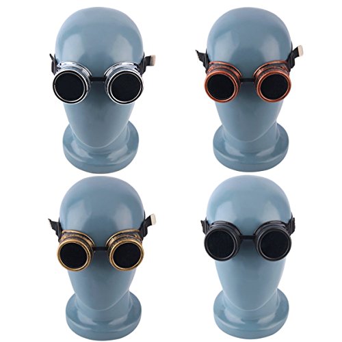 -. Feature : The frame made of high quality hard coated plastic,which makes a vintage feeling / Perfect for cosplay / costumes for Steampunk, Cyber, Ramona Flowers, Burning Man, etc. / Fits different head size with adjustable elastic band / Tough lens provides impact resistance / Clear glass lenses. Unscrew the caps to interchange the lens.