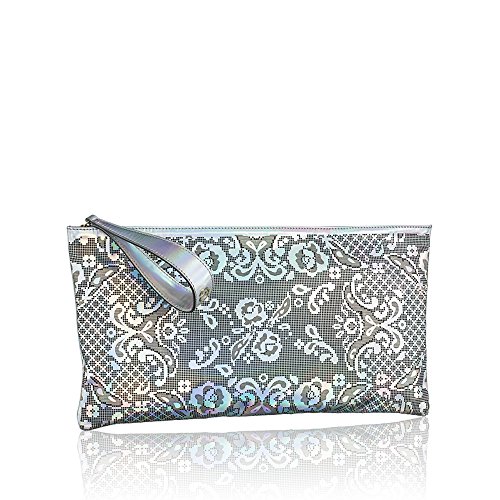-. Title : NADA SAWAYA Women's GIGI Large Rectangular Laser-cut Wristlet Clutch