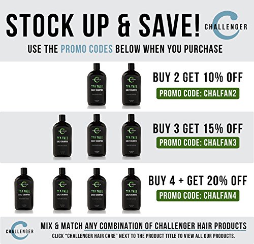 Challenger Tea Tree Shampoo is designed to not be used every day. With premium ingredients and all the things you want in a shampoo, this product will keep you clean and sparkly when you want!
