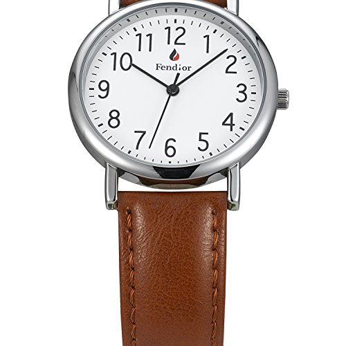 HIGH QUALITY : Soft light brown leather 16 mm watch band with tonal stitching and buckle closure,35 mm polished finish durable metal case with mineral glass dial window,provide comfortable wearing experience