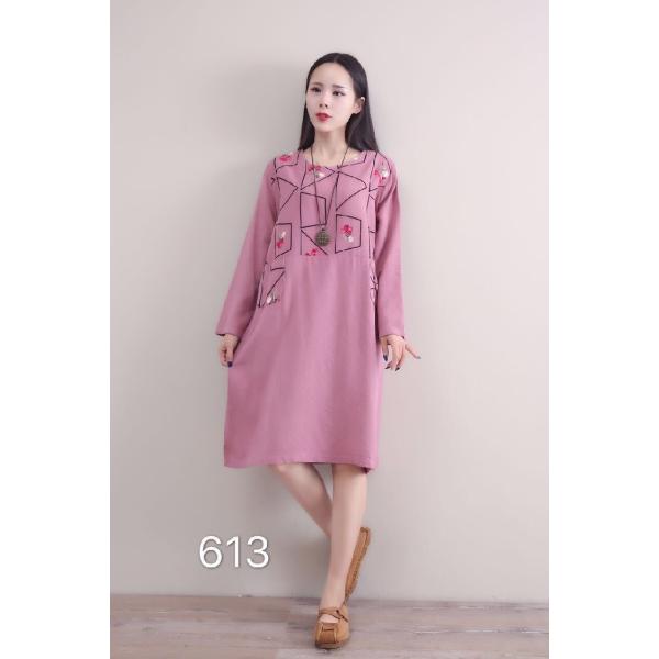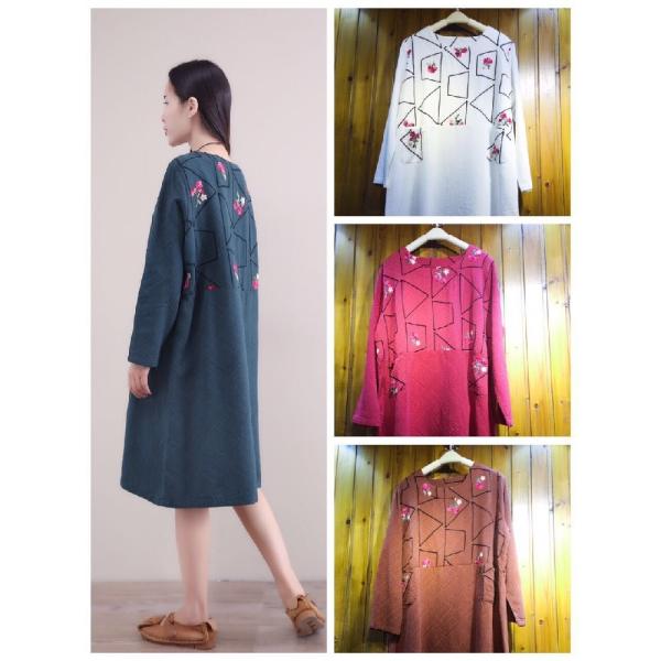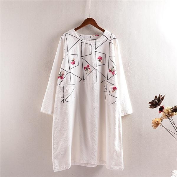 森ガール風のフラワー刺繍がワンポイントになったワンピース。