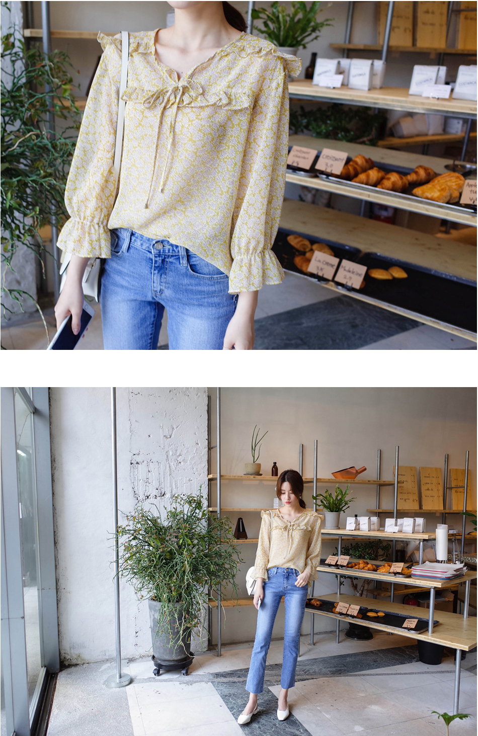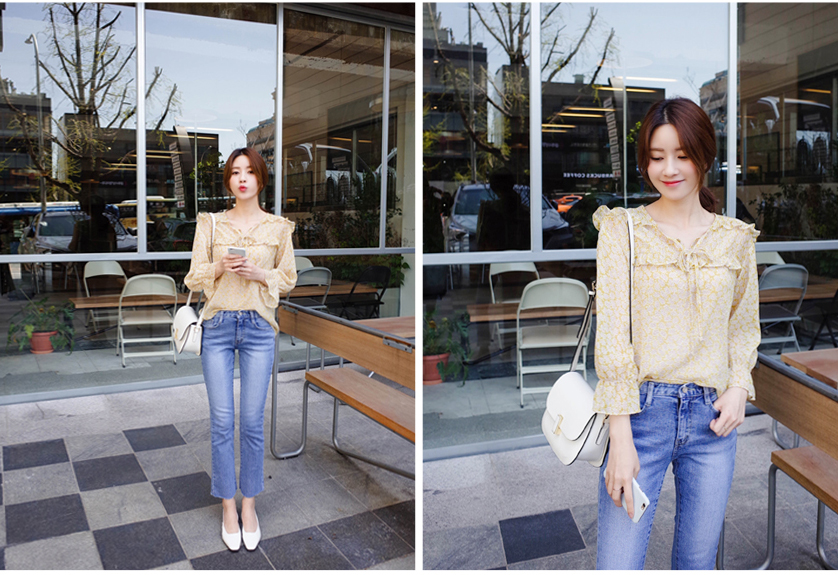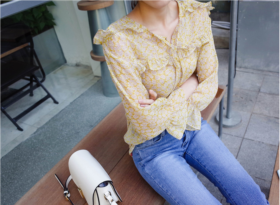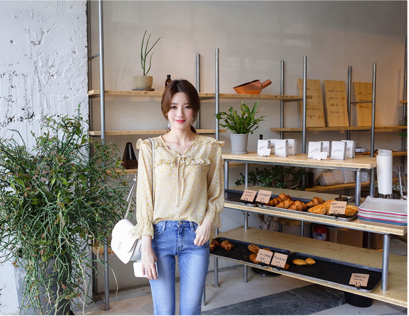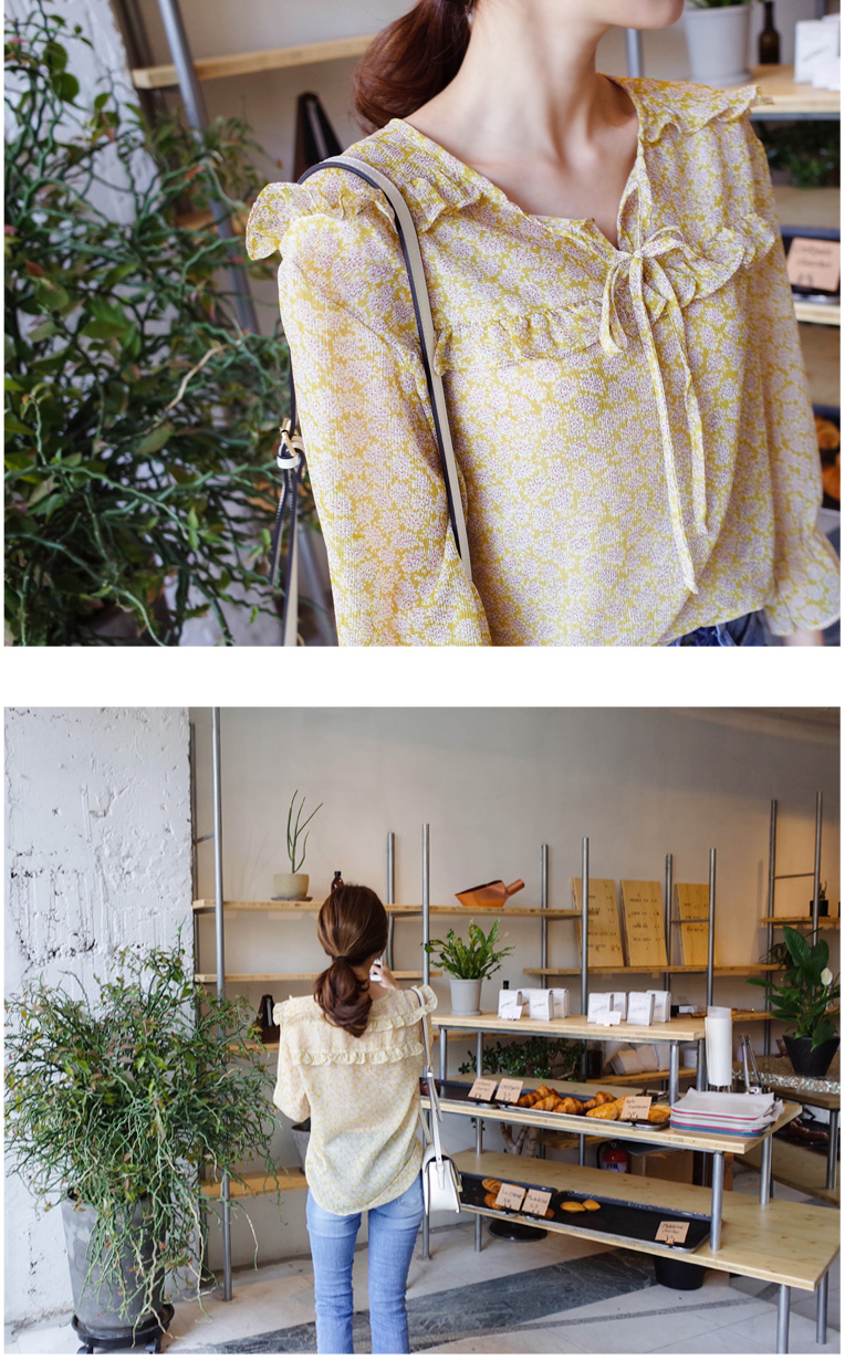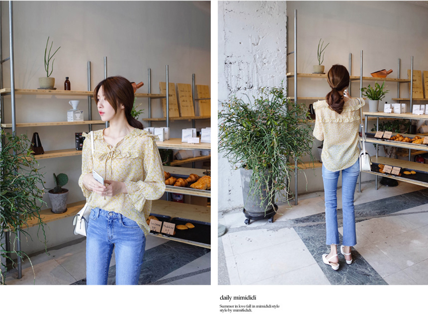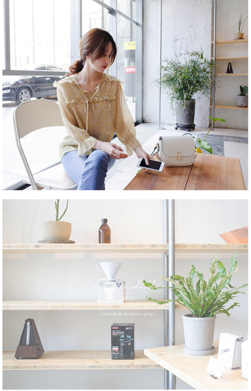 여리여리한 느낌의 잔꽃 패턴의 블라우스요:)