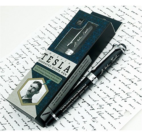 -. Feature : Nikola Tesla quote pen, engraved with Nikola Tesla's signature and quote / Quote reads, "TO FIND THE SECRETS OF THE UNIVERSE, THINK IN TERMS OF ENERGY, FREQUENCY, AND VIBRATION." - Nikola Tesla / Elegant and durable, this pen weighs approximately 55 gm, and measures approximately 5.5" long / Roller ball writing tip with black ink; Easy-to-replace ink cartridge / Makes a suitable gift for any scientist, engineer, inventor, or Tesla fan!