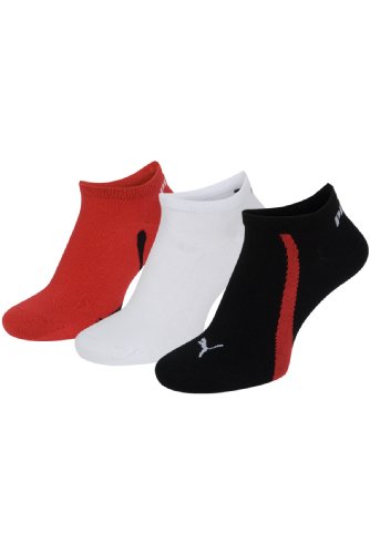 Binding : Apparel Product Description It’s almost a shame to hide these great-looking Puma Sneaker Socks, but that’s just what the below ankle height socks are intended for. The socks come in a pack of three pairs, with three different shades all featuring a curving design, with the Puma logo to the heel and the Puma cat to the toe. The low elasticated opening and hand linked toes for smooth seams makes these cushioned socks perfect for wearing with sneakers, plimsolls or trainers.(01/12) 0