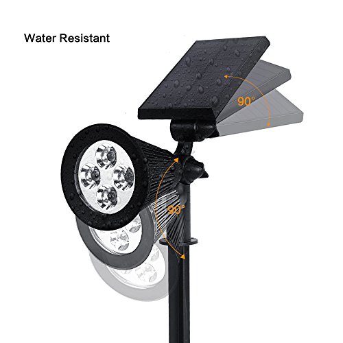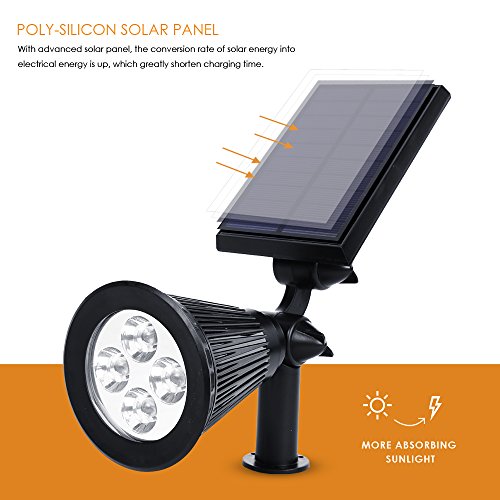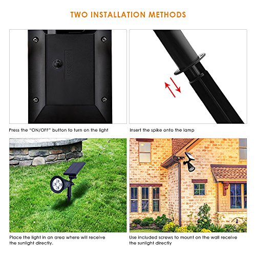 Auxmart Solar Lights 2-in-1 Waterproof 4 LED Solar Spotlight Adjustable Wall Light Landscape Light Security Lighting Dark Sensing Auto On/Off for Landscapes, Grass Area, Decks, Docks (Pack of 2)