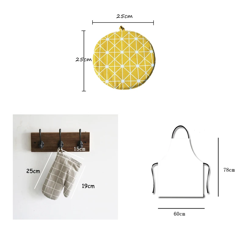 Package Included:2 Oven Mitts + 1 Apron + 1 Placemat