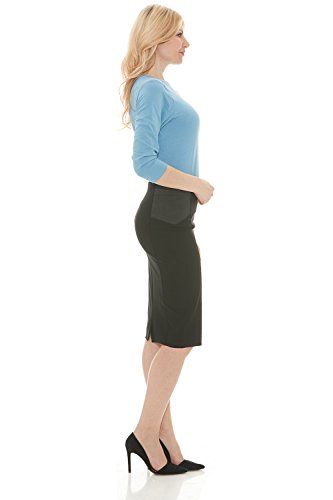 Binding : Apparel Product Description Esteez Ponte Pencil Skirt for Women Below Knee Length with Elastic Insert This awesome Ponte de Roma PDR pull on skirt has elastic inserts on the sides of the waist. Figure flattering and sorta tummy tucking, this is a MUST HAVE in every fashionista's wardrobe. So comfortable, you will not want to take it off. A totally versatile skirt that can be worn to the office, to a party, or a night out on the town. It comes in 3 fabulous colors, each nicer than the next. If you are looking for a skirt with durability, this is the one for you! Warning....... you will want these in every color!!! The Esteez brand has been around since 2013, and we pride ourselves on total customer satisfation. Our feedback speaks for itself, so please feel free to have a look :) Our quality control of our merchandise is taken very seriously to always make sure that the customer receives a top quality garment at an affordable price. All of our styles come individually packed with our Esteez branding and are a perfect gift item for your loved ones! 0