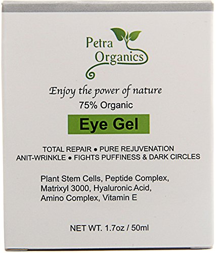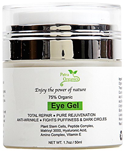 Petra Organics Eye Cream Gel - Natural and 75% Organic - Anti Wrinkle - Anti Aging Under and Around Eye Cream Area with Jojoba Oil, Vitamin E and...