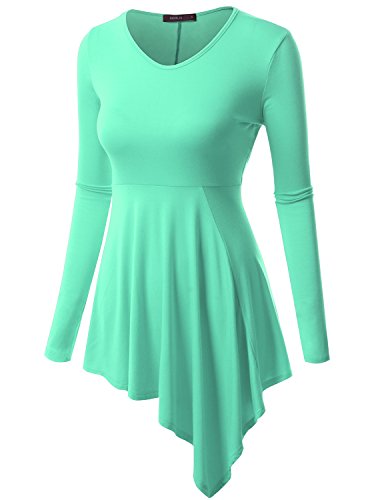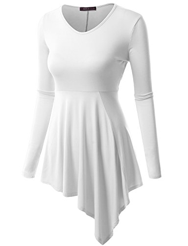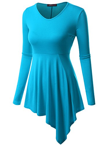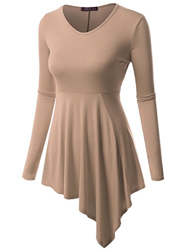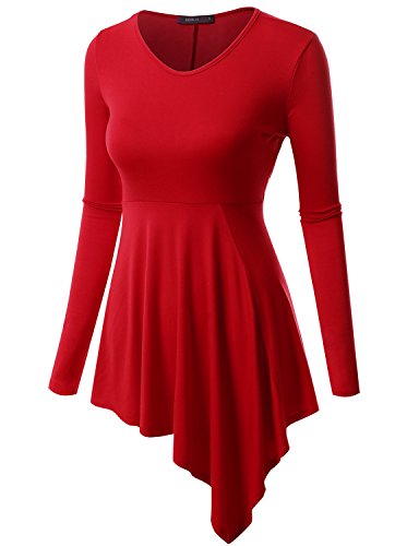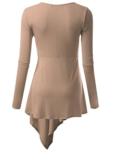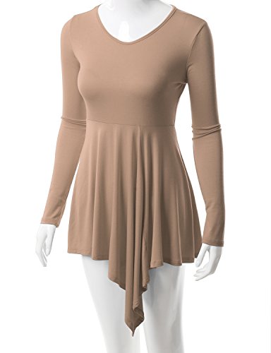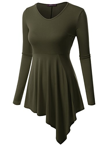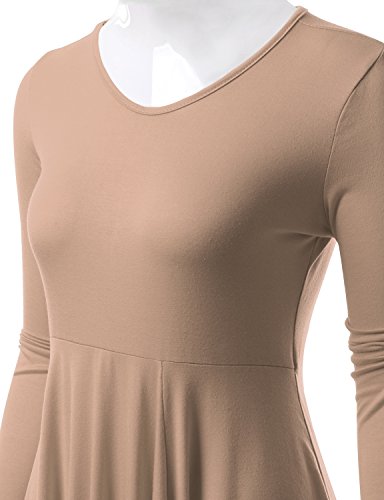 Doublju Womens Long Sleeve Round Neck Casual Comfy Solid Unblance Drape Dresses