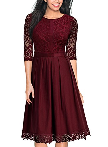 Women's Vintage Half Sleeve Floral Lace Cocktail Party Pleated Swing Dress