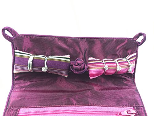 (SunHome)/Nursery/Furniture/DIRECT FROM USA/Travel Jewelry Roll Bag with Silk Embroidery Brocade Tie Close Handbags - Black