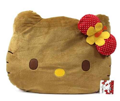 -. Title : Hello Kitty Hibiscus Dot Face Cushion - 18" Brown