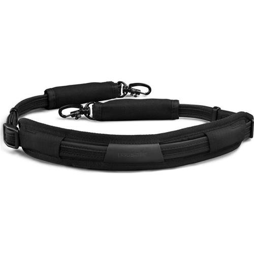 -. Brand : Pacsafe -. Department : unisex-adult -. Feature : Non-slip / movable neck pad / Spring-loaded metal clips with locking mechanism allows strap to be quickly clipped to the camera case without removing webbing connectors from camera / Universal webbing connectors fit most cameras and binoculars / Neoprene sleeves cover joining clips for maximum camera protection and security / Minimal branding doesn't draw attention to camera -. Model : 15260 -. PackageQuantity : 1 -. ProductGroup : Apparel -. ProductTypeName : LUGGAGE -. Title : Pacsafe CarrysafeTM 100 Camera Strap