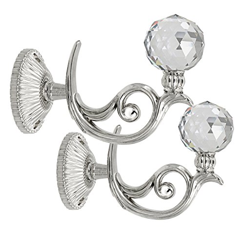 BTSKY Pair of Phoenix Glass Crystal Curtain Holdbacks Hooks Drapery Tiebacks Tassel holder (Silver)
