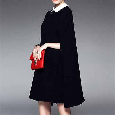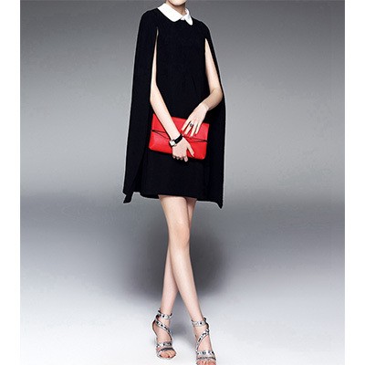 パーティードレス ミニ丈 ワンピース カーディガン風 襟付き ブラック レッド フォーマル オフィス お呼ばれ 大人 上品 drgz2578