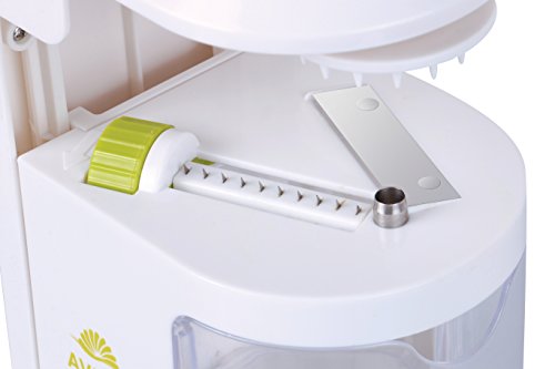 GREAT FEATURES: Heavy duty built-in suction cup will keep the slicer steady on your counter-top. Four Stainless Steel blades are built into the unit so you cannot lose them. It is also dishwasher safe